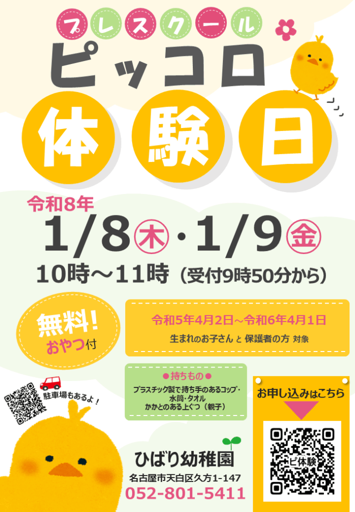 ひばり幼稚園の未就園児親子クラス「プレスクール【ピッコロ】」では、