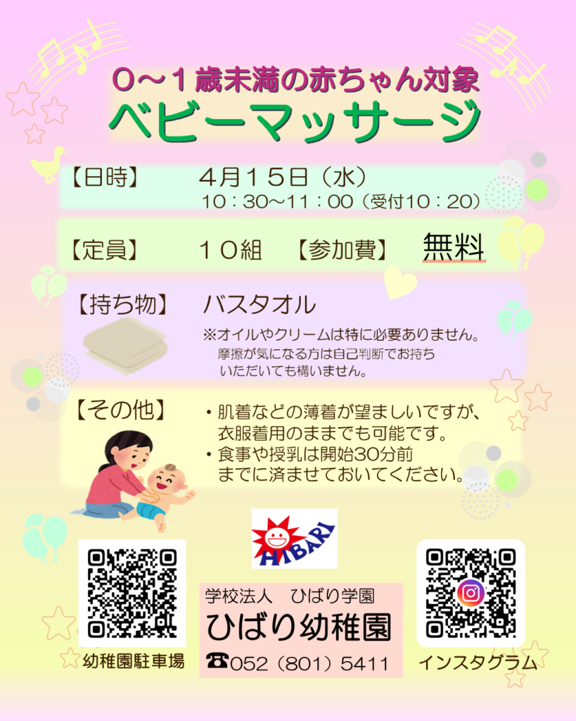 イベント情報☆4月15日㊌【ベビーマッサージ】